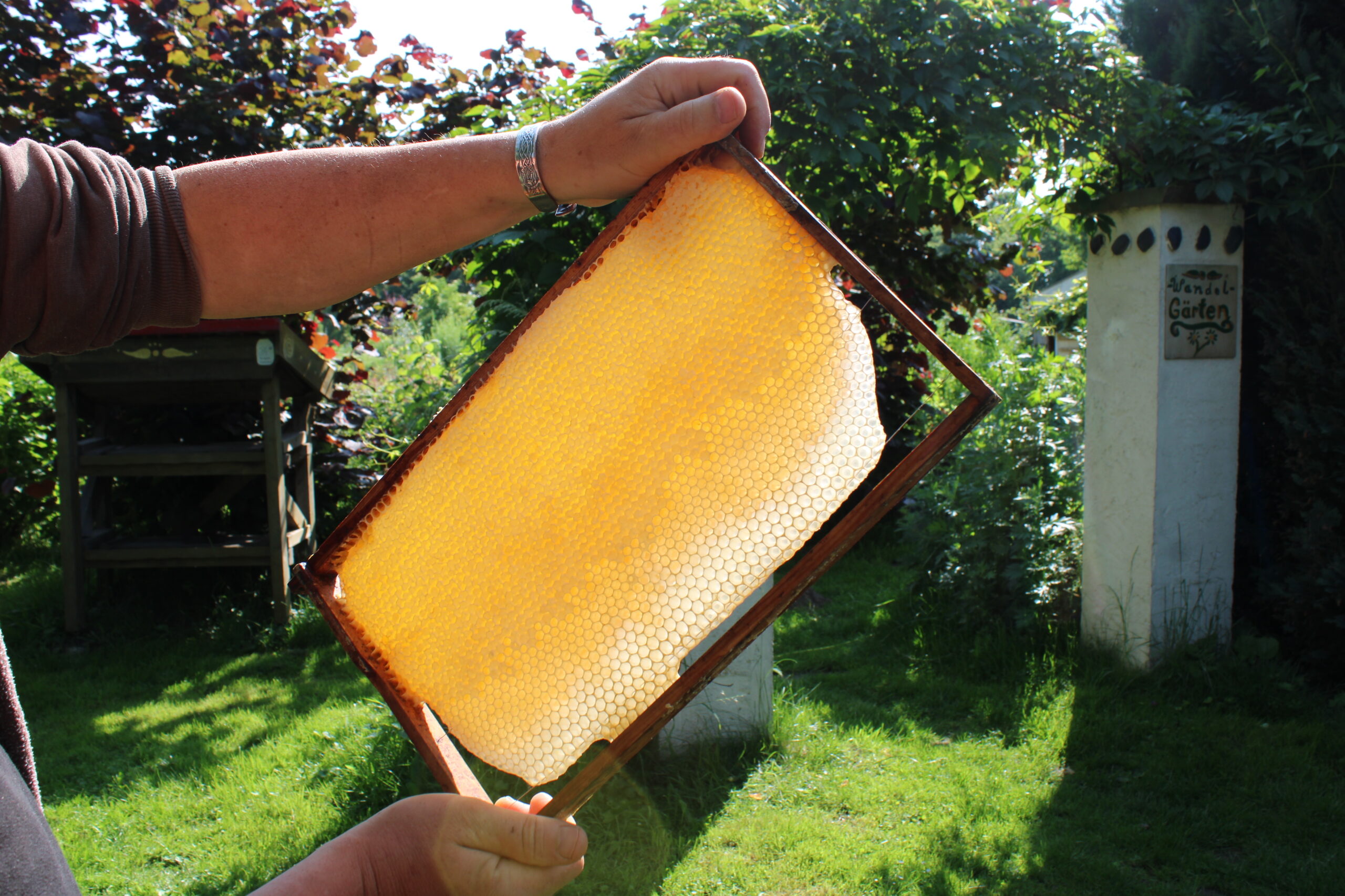Wer gerne Wabenhonig mag, für den können wir auch ganze Waben reservieren. Dazu müssen wir frühzeitig die Menge wissen. Da wir zweimal im Jahr schleudern, sind diese beiden Termine damit auch die Abholtermine. Versand findet in dieser Form so nicht statt, hierfür gibt es die Honigeimer.