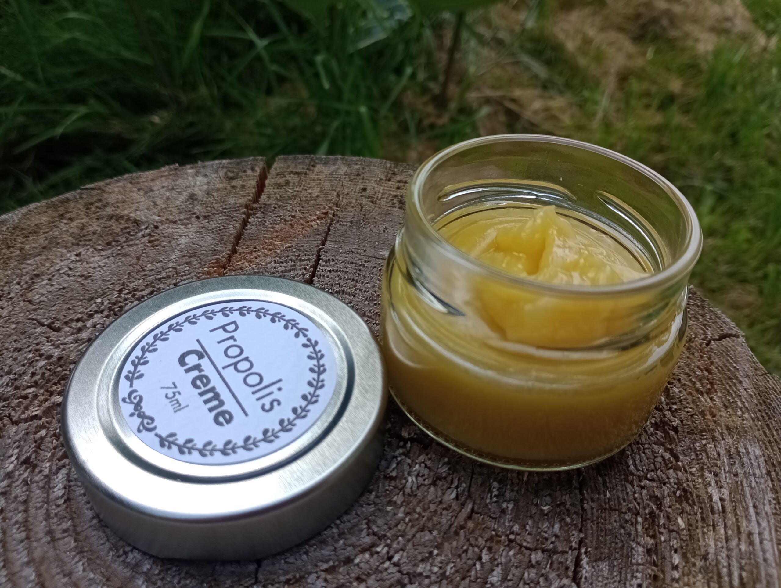 Als Imker sind wir in der glücklichen Lage unser eigenes Propolis in unseren Bienenstöcken ernten zu können. Seit vielen Jahren darf ich testen, was man damit alles machen kann und ich habe festgestellt, was für ein wertvolles Mittel uns die Natur, insbesondere die Bienen da schenken! An diesem Nachmittag dreht sich also alles um das Thema Propolis. Was ist das, wie kann man es anwenden und wofür. Außerdem stellen wir zusammen eine Creme her, die in unserem Alltag nicht mehr fehlen darf und in vielen Situationen zum Einsatz kommt. Alle Teilnehmer bekommen ihre eigene Propoliscreme und ein kleines Büchlein mit Rezepten und Wirkweisen von Propolis mit nach Hause.