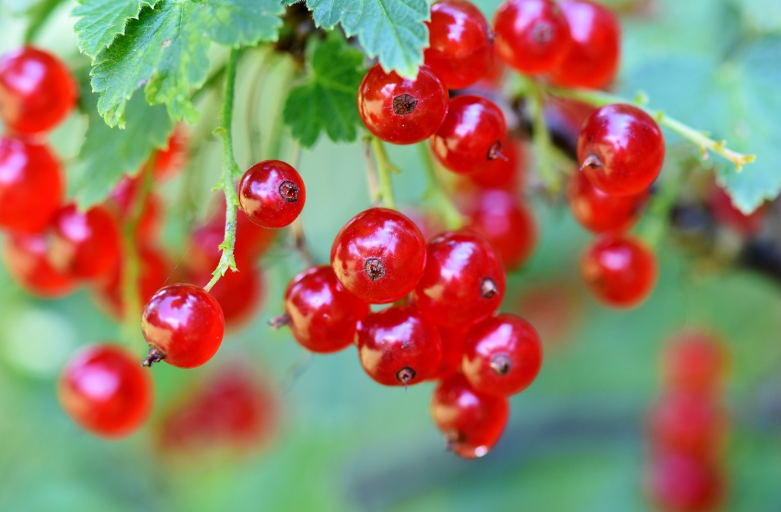 Rote Johannisbeeren findet Ihr im Wandelgartenteil. Sie wachsen gemischt mit den schwarzen Johannisbeeren. Wir nutzen sie gerne zum pur essen oder für Saft.