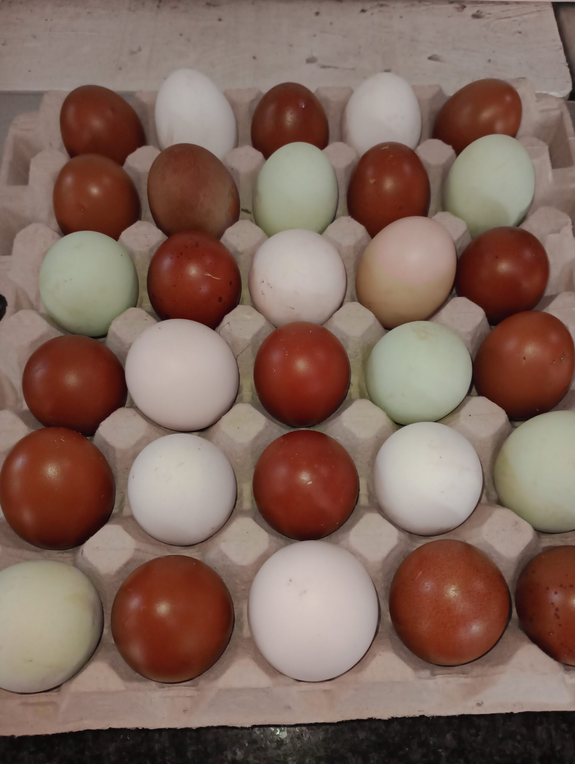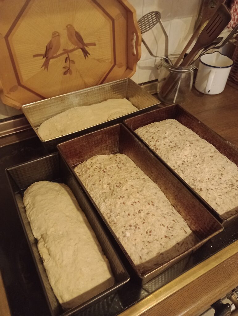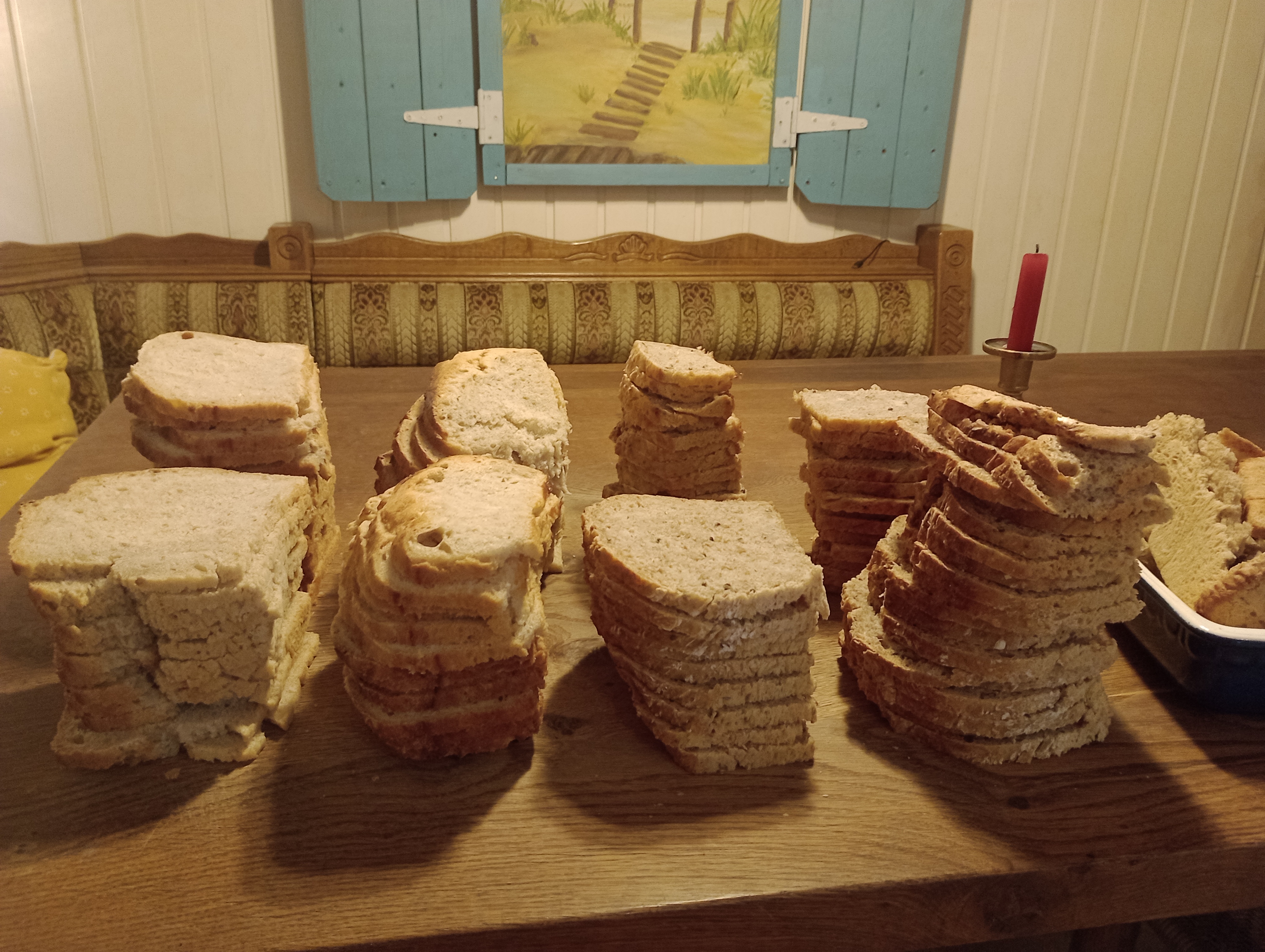 Unsere Hühner schenken uns unser Frühstücksei und unser Brot backen wir selber.