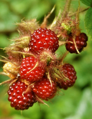 Weinbeeren (Japanische Weinbeere) sind ein heimlicher Star unseres Gartens. Vom Geschmack etwas saurer als Himbeeren, eignen sie sich hervorragend zum Naschen, dekorieren von Torten oder für Marmeladen.